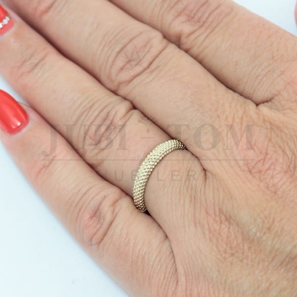 Złoty Pierścionek a'la Obrączka – Fakturowana Struktura – Próba 585