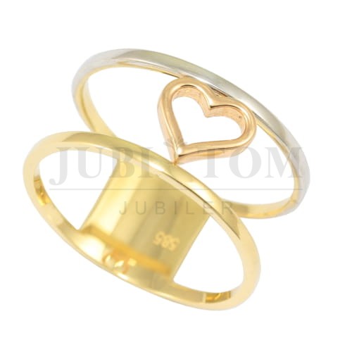 Ciekawy pierścionek a'la obrączka z sercem próba 585