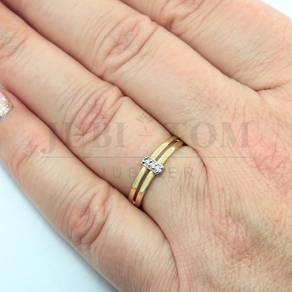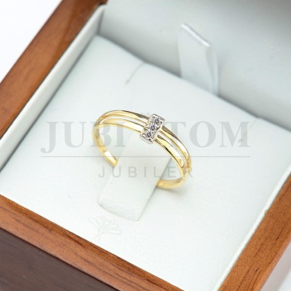 Pierścionek złoty z trzema cyrkoniami