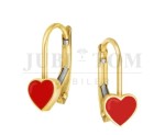 Głównym elementem ozdobnym jest serduszko pokryte czerwoną emalią. Intensywny, radosny kolor pięknie mieni się na tle ciepłego, żółtego złota, dodając całości dziecięcego uroku.