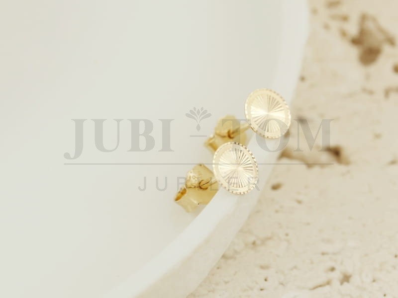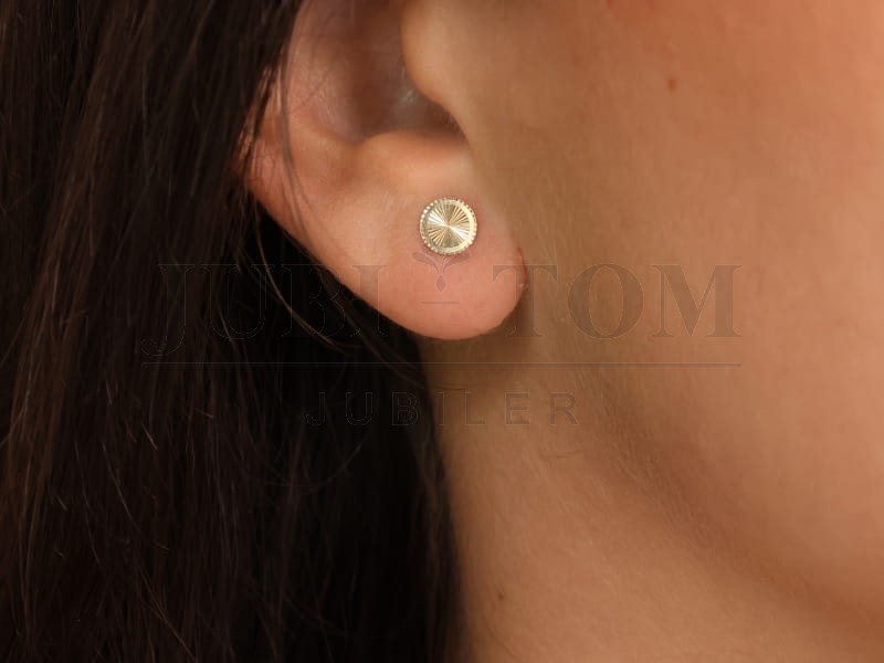 Kolczyki złote okragłe, płaskie, diamentowane sztyft złoto p.585