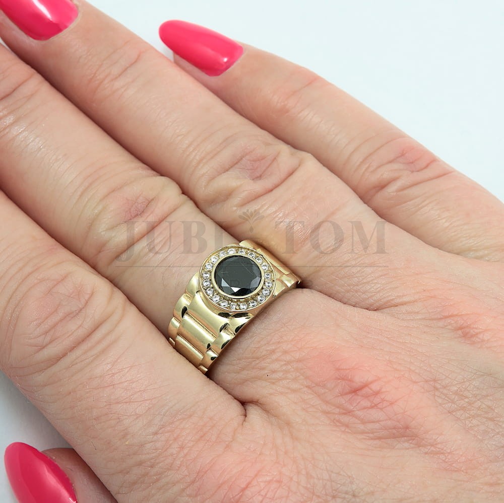 Złoty Sygnet Modowy – Black Onyx Style (Próba 585)