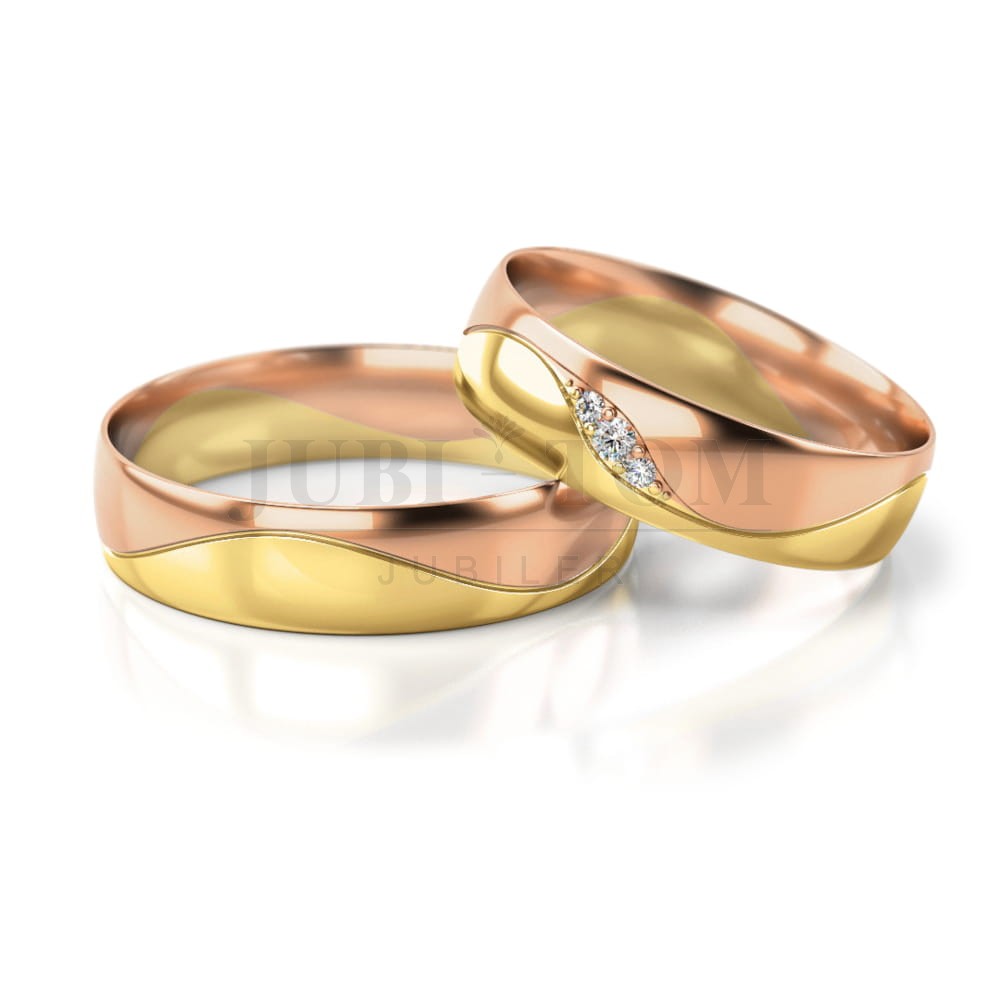 Obrączki wykonane są metoda bezszwową, ze złota próba 585(istnieje możliwość wykonania obrączek z innej próby złota). Istnieje możliwość zamiany kolorów, wykonania obrączek w jednym kolorze złota.