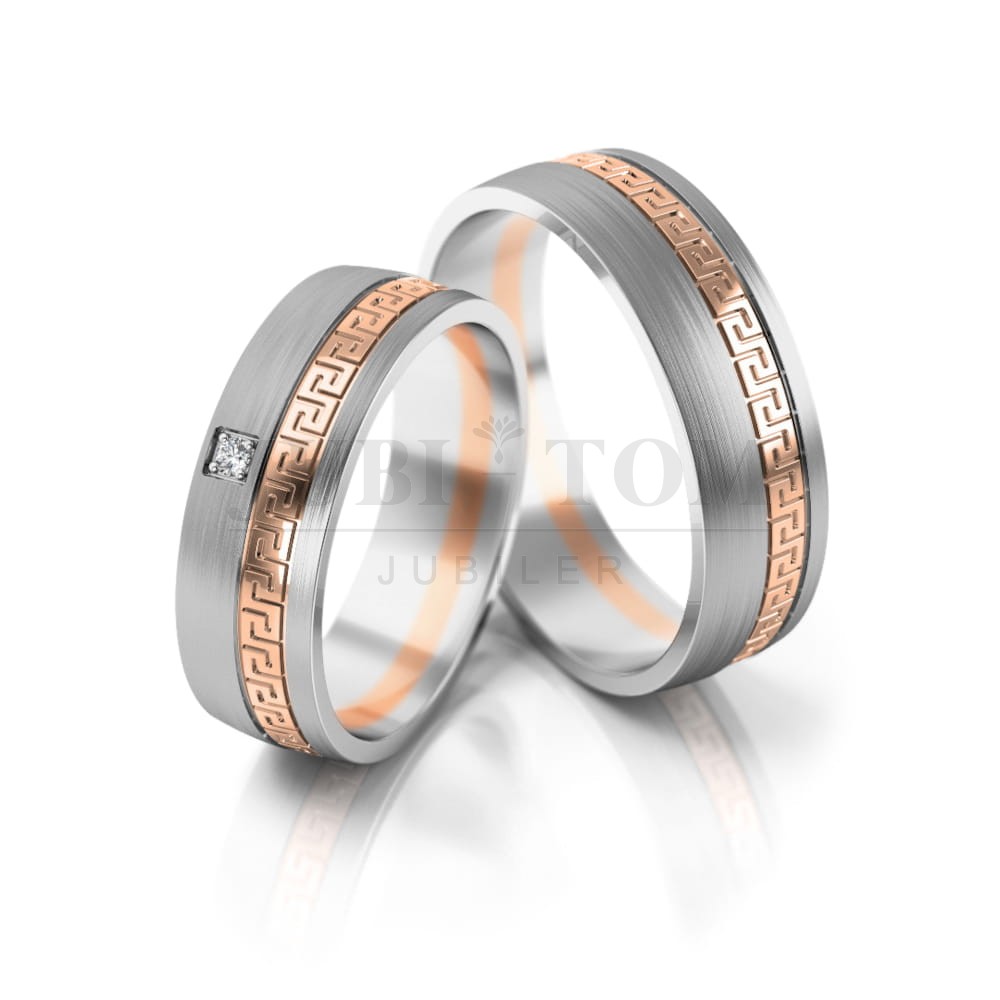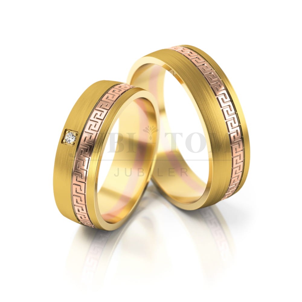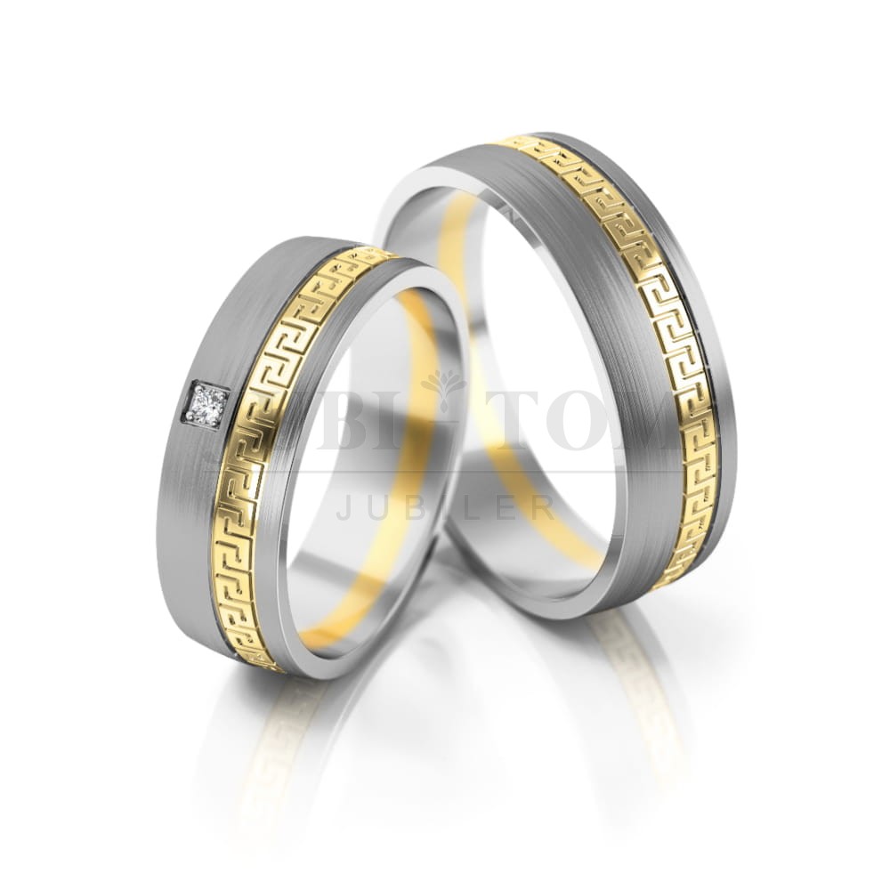 Obrączki dwa kolory z drogą grecką złoto próba 585