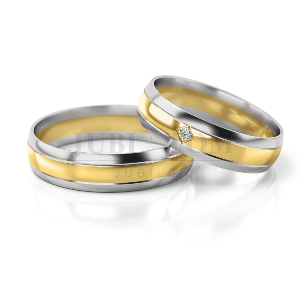 Obrączki dwa kolory z kamieniem złoto próba 585