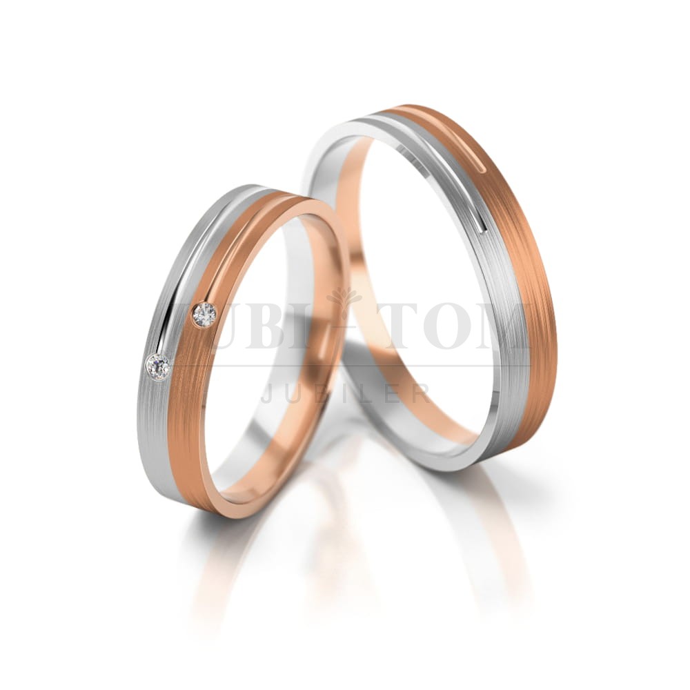 Obrączki wykonane są metoda bezszwową, ze złota próba 585(istnieje możliwość wykonania obrączek z innej próby złota). Istnieje możliwość zamiany kolorów, wykonania obrączek w jednym kolorze złota.