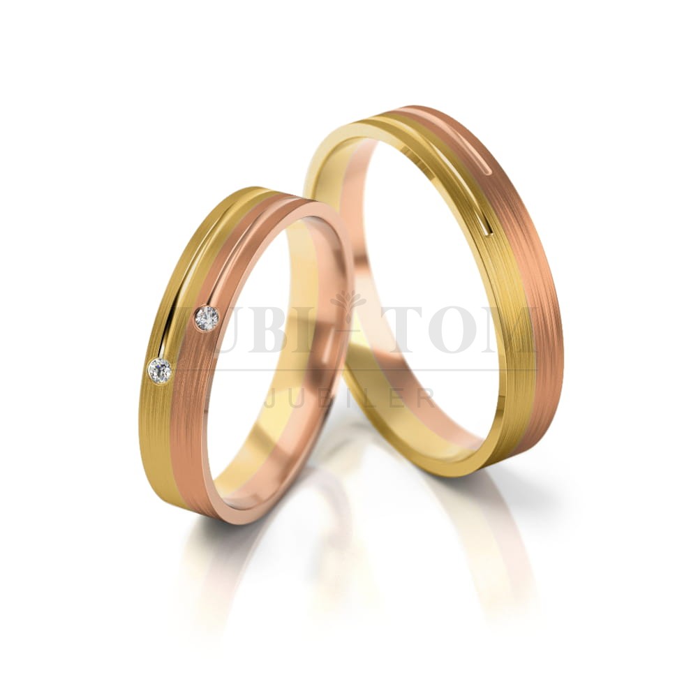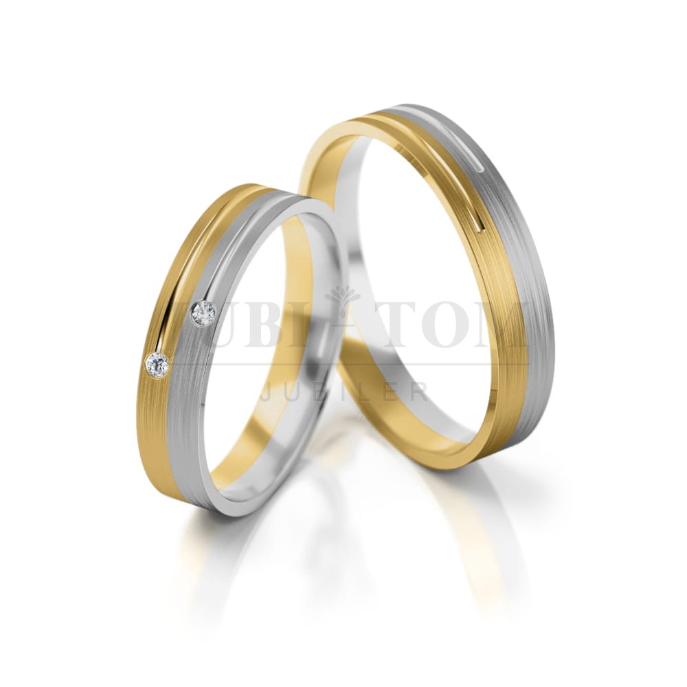 Obrączki dwukolorowe z matem satyna i kamieniami złoto próba 585