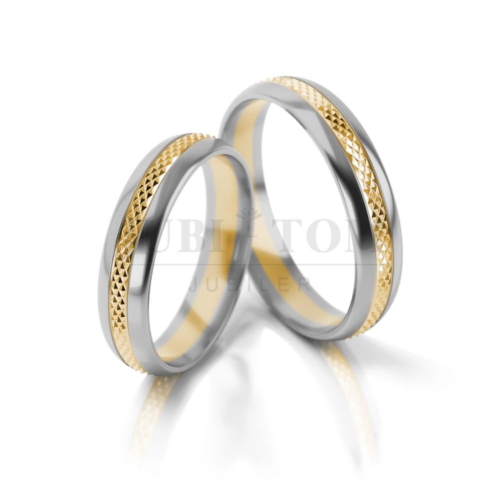 Obrączki wykonane są metoda bezszwową, ze złota próba 585(istnieje możliwość wykonania obrączek z innej próby złota). Istnieje możliwość zamiany kolorów, wykonania obrączek w jednym kolorze złota.