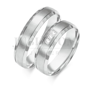 Obrączki jeden kolor z diamentowanym bokiem z kamieniami pr 585