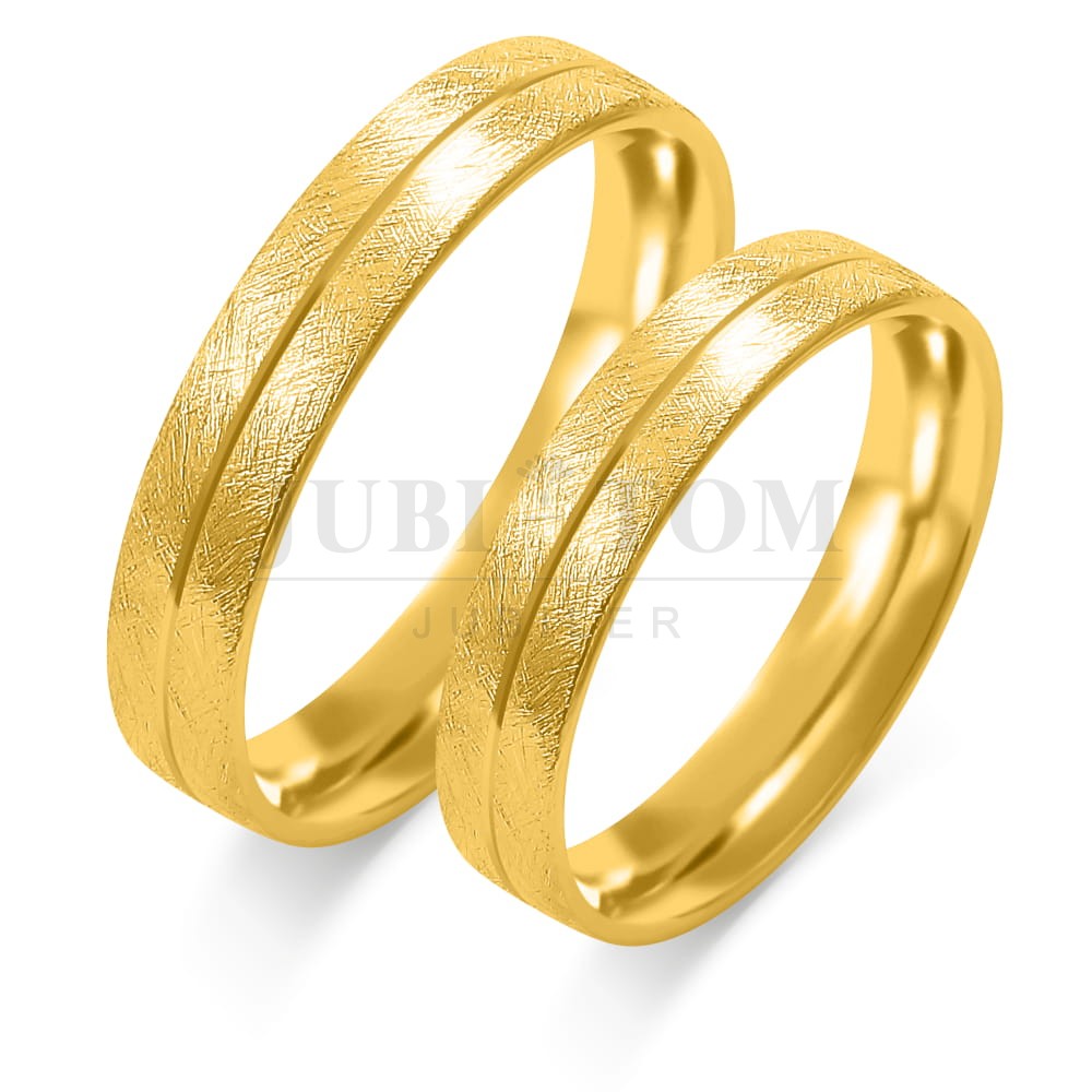 Obrączki lekko zaokraglone z frezem pośrodku zółte złoto próba 585
