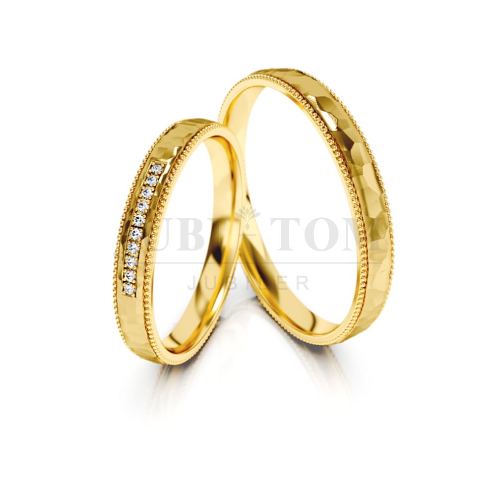 Obrączki młotkowane jeden kolor z kamieniami złoto próba 585