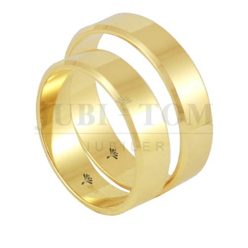 Obrączki płaskie fazowane z żółtego złota