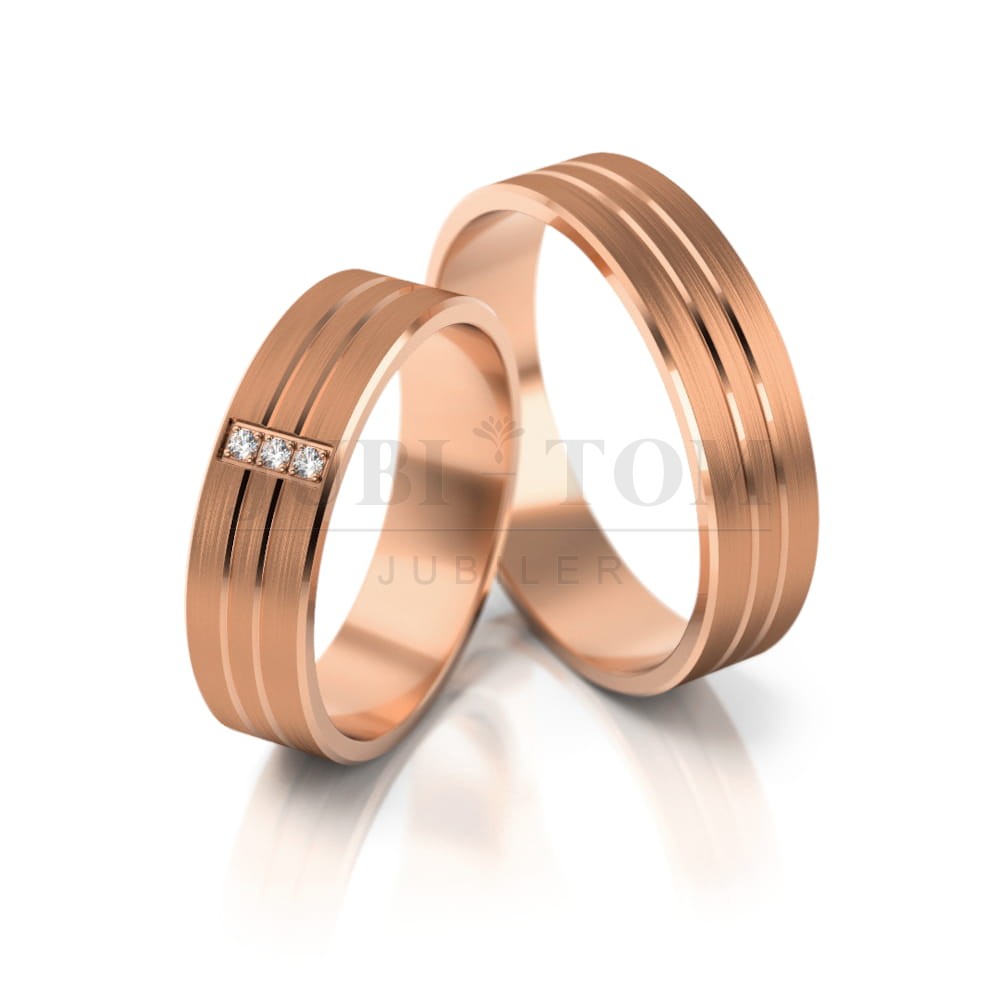 Obrączki wykonane są metoda bezszwową, ze złota próba 585(istnieje możliwość wykonania obrączek z innej próby złota). Istnieje możliwość zamiany kolorów, wykonania obrączek w jednym kolorze złota.