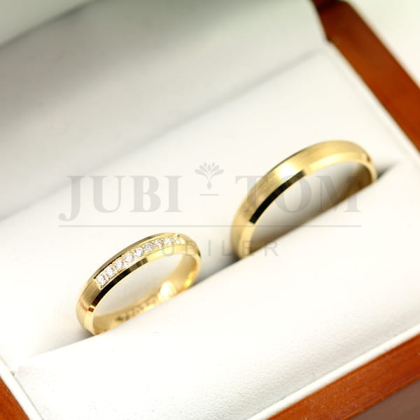 Obrączki wykonane są metoda bezszwową, ze złota próba 585(istnieje możliwość wykonania obrączek z innej próby złota). Istnieje możliwość zamiany kolorów, wykonania obrączek w jednym kolorze złota.