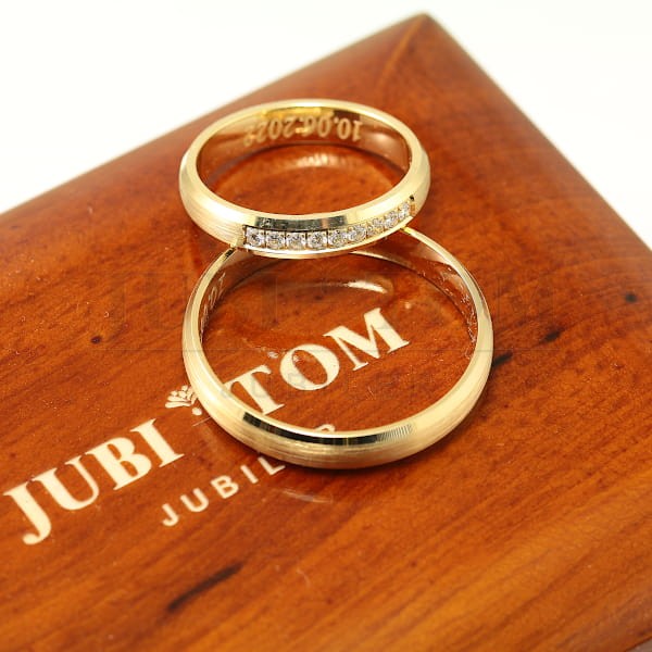 Obrączki wykonane są metoda bezszwową, ze złota próba 585(istnieje możliwość wykonania obrączek z innej próby złota). Istnieje możliwość zamiany kolorów, wykonania obrączek w jednym kolorze złota.