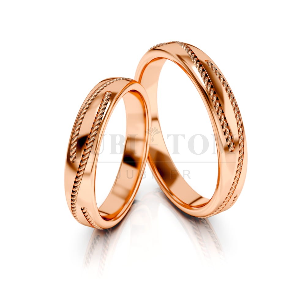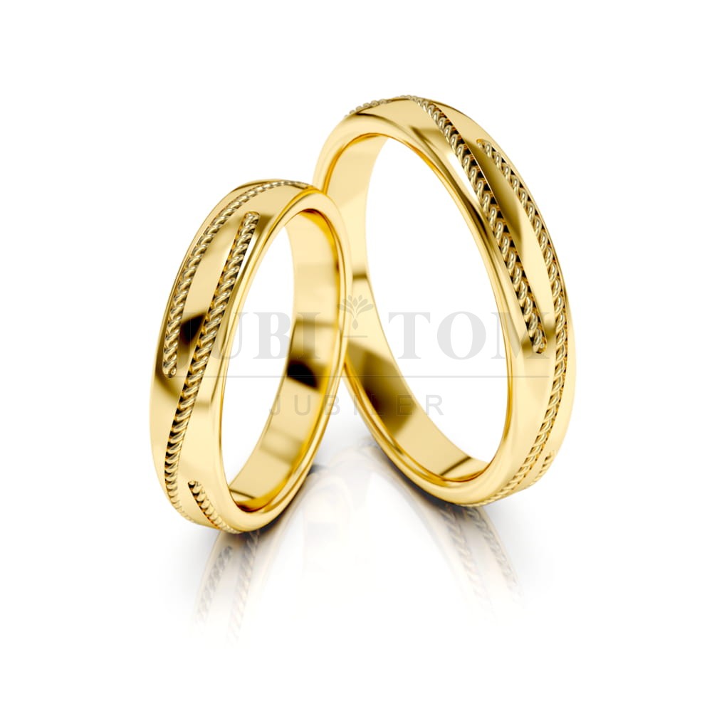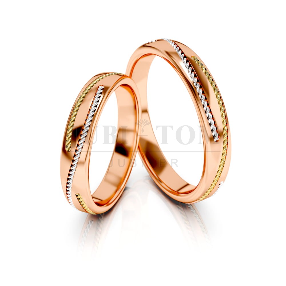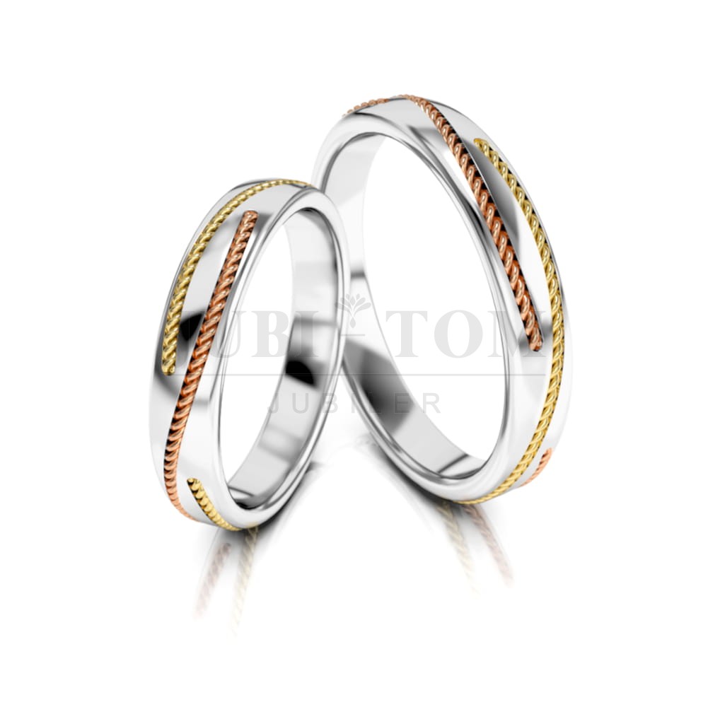 Obrączki wykonane są metoda bezszwową, ze złota próba 585(istnieje możliwość wykonania obrączek z innej próby złota). Istnieje możliwość zamiany kolorów, wykonania obrączek w jednym kolorze złota.
