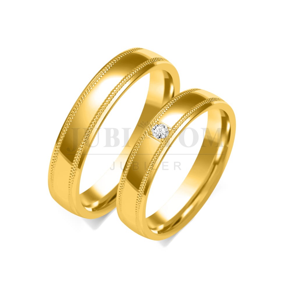 Obrączki wykonane są metoda bezszwową, ze złota próba 585(istnieje możliwość wykonania obrączek z innej próby złota). Istnieje możliwość zamiany kolorów, wykonania obrączek w jednym kolorze złota.