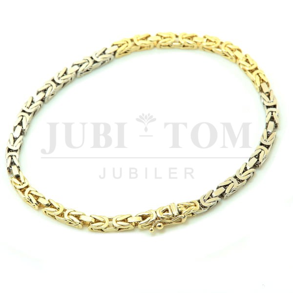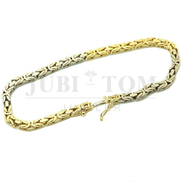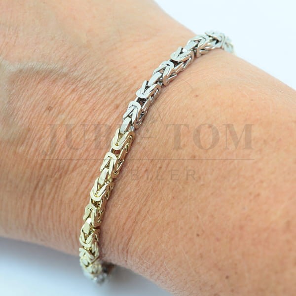 Pełna dwukolorowa złota bransoletka splot królewski