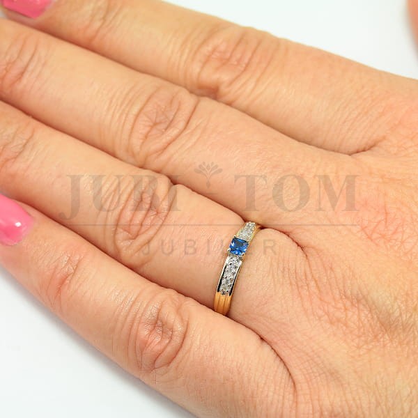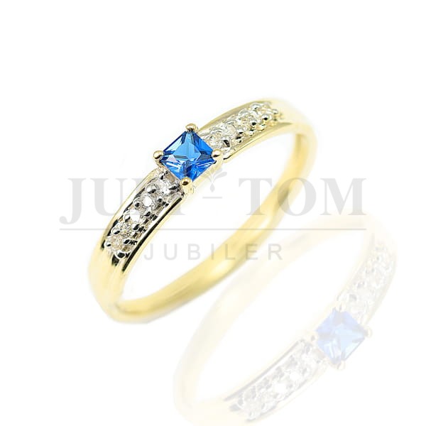 Pierścionek złoty z centralną cyrkonią 3 mm x 3 mm kolor szafir