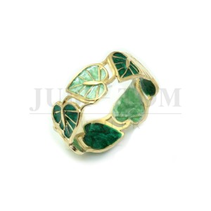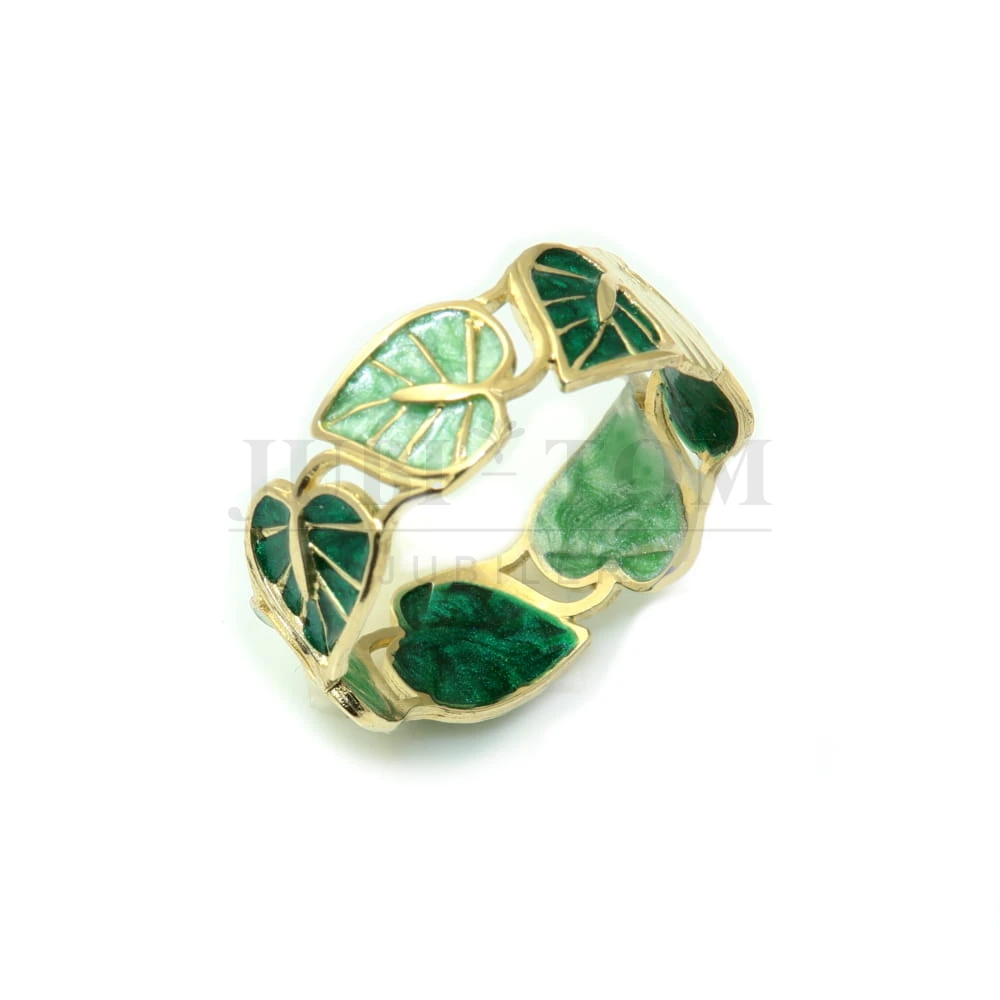 Cieniowana Emalia: Kilka odcieni zieleni sprawia, że pierścionek wygląda bardzo realistycznie i przyciąga wzrok.