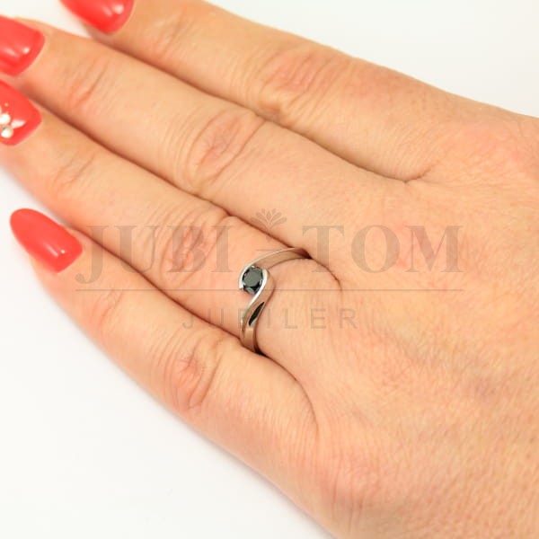 Pierścionek z białego złota z czarnym diamentem pr 585