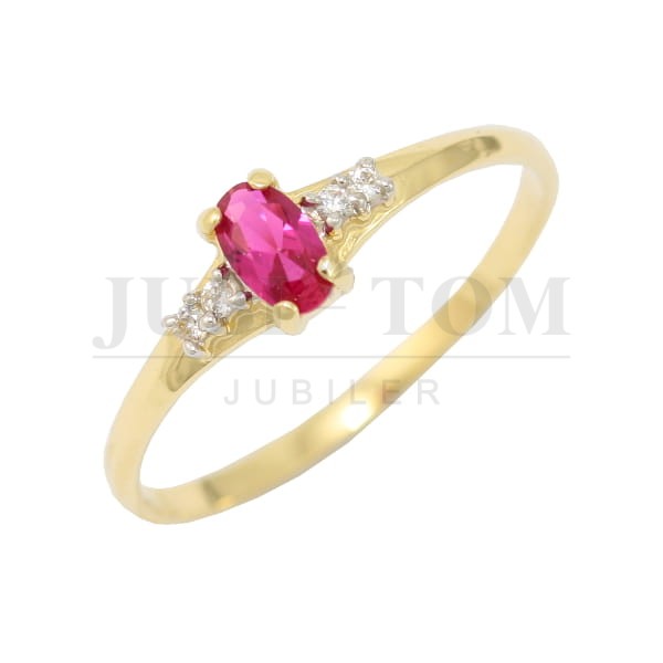 centralna cyrkonia barwiona (kolor rubin)+ 4 białe