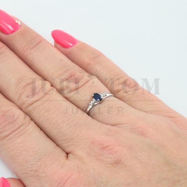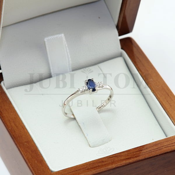 Pierścionek z brylantami i owalnym szafirem złoto próby 585