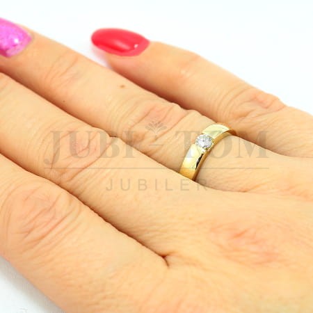 Pierścionek z brylantem -0,12 ct a'la obrączka p.585