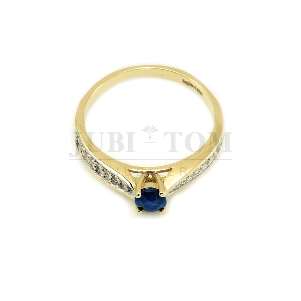Pierścionek złoty z cyrkoniami i szafirem 0.32ct