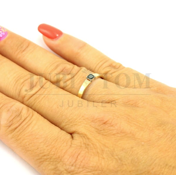 Pierścionek złoty z cyrkonią w kolorze czarnym