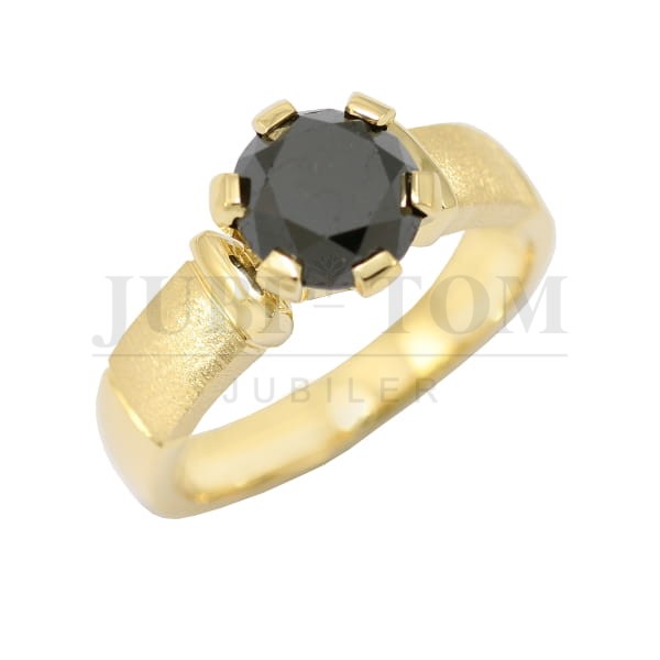 Pierścionek złoty z czarną cyrkonią Fi. 6 mm