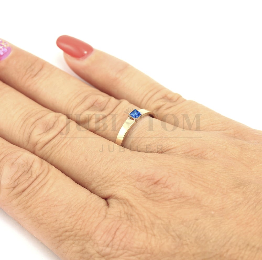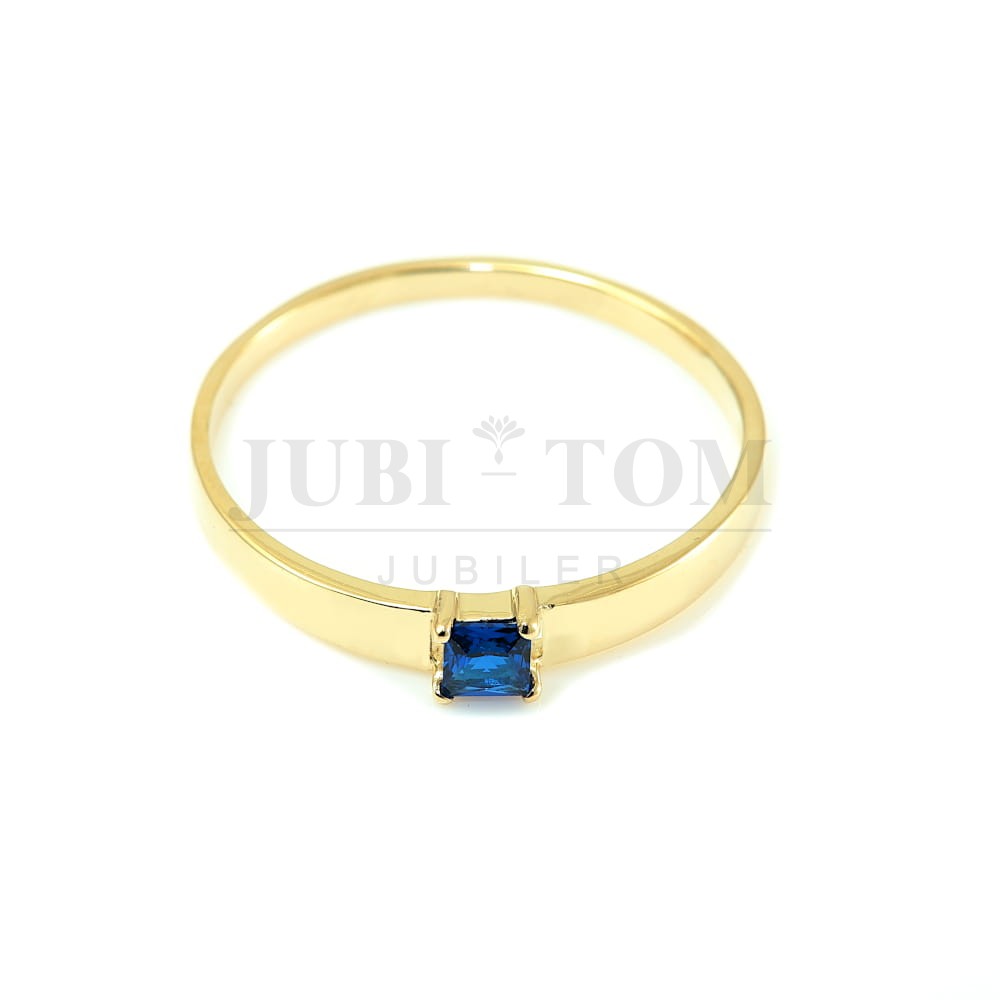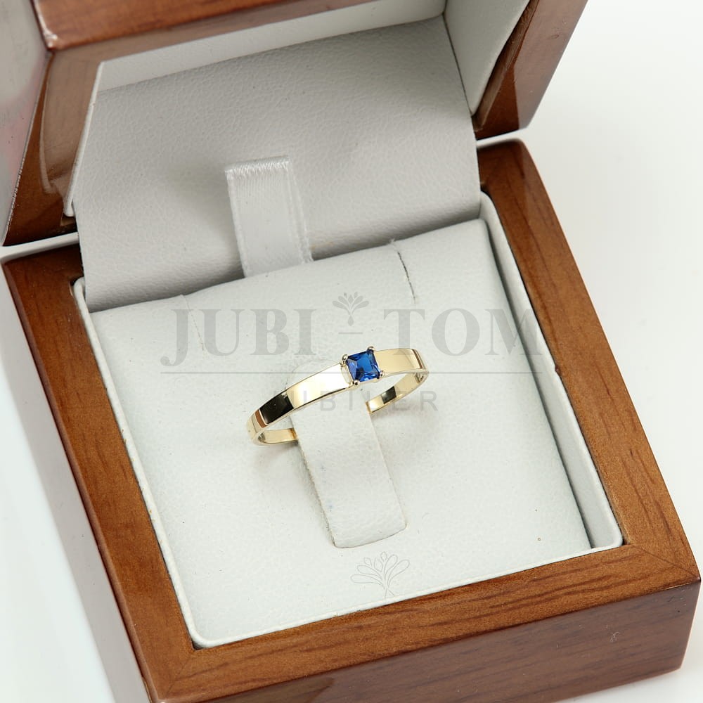 Złoty pierścionek z niebieską cyrkonią – Szlif Kwadratowy