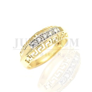 Pierścionek złoty z wzorem Versace i 5 cyrkoniami