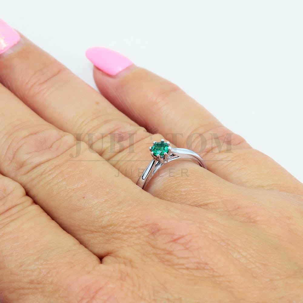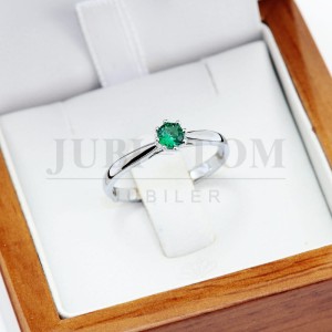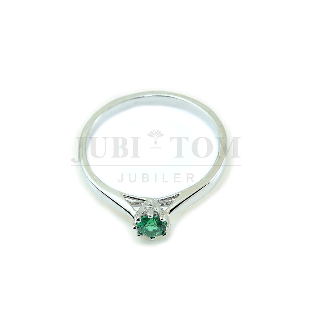 Pierścionek z zieloną cyrkonią białe złoto p.585