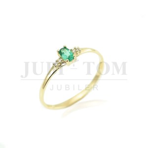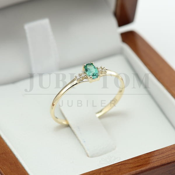 Śliczny pierścionek ze szmaragdem i cyrkoniami p.585