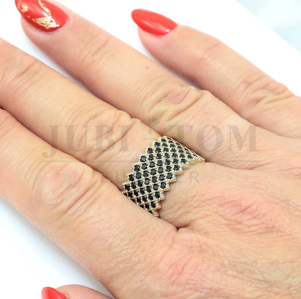 Szeroki złoty pierścionek z czarnymi cyrkoniami p.585