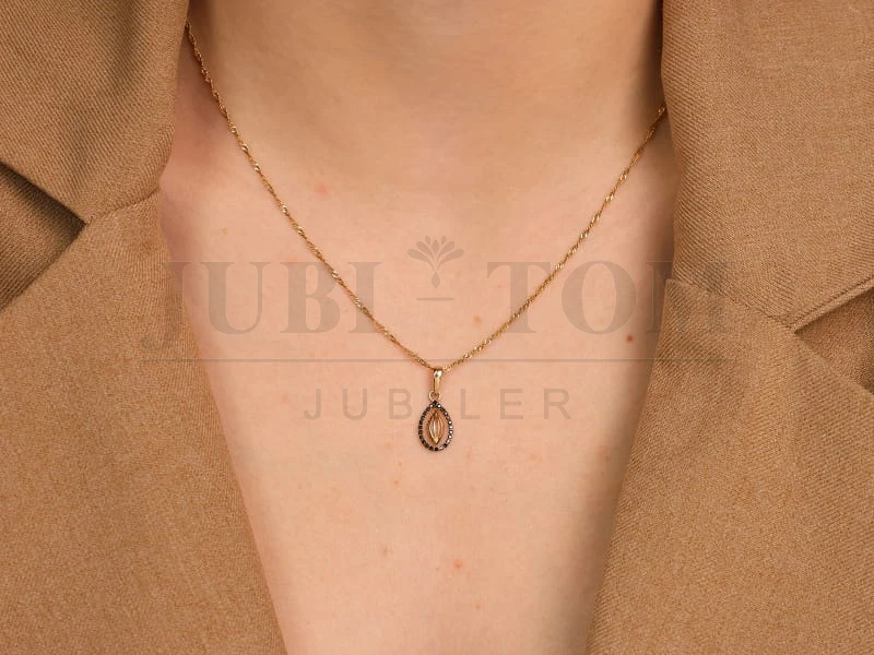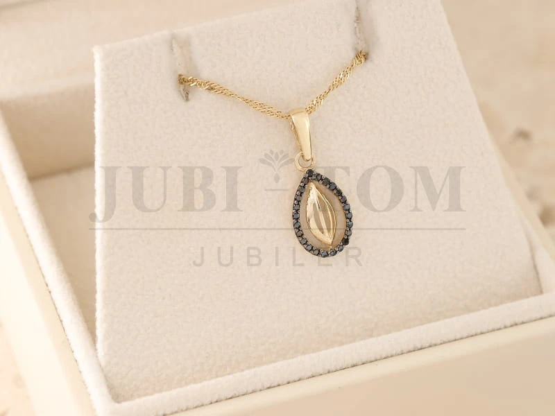 Złota Zawieszka Migdał z Czarnymi Cyrkoniami – Nowoczesny Kontrast (Próba 585)