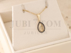 Złota zawieszka Migdał z czarnymi cyrkoniami p.585