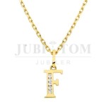 Złota zawieszka litera F z cyrkoniami