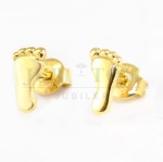 Złote kolczyki stópki na sztyft.