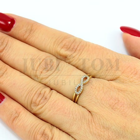 Złoty pierścionek nieskończoność z cyrkoniami p.585
