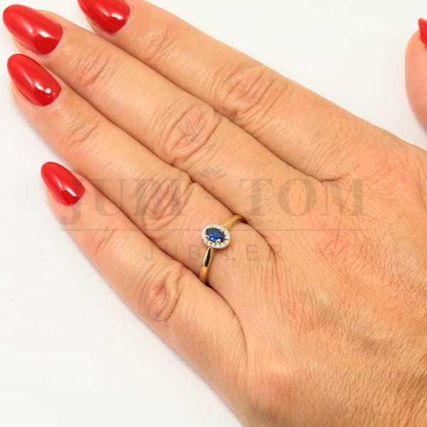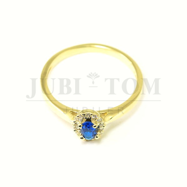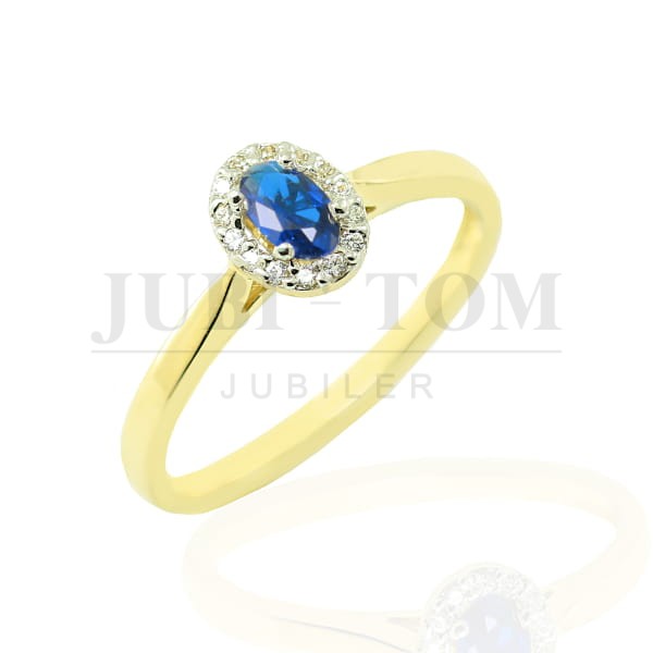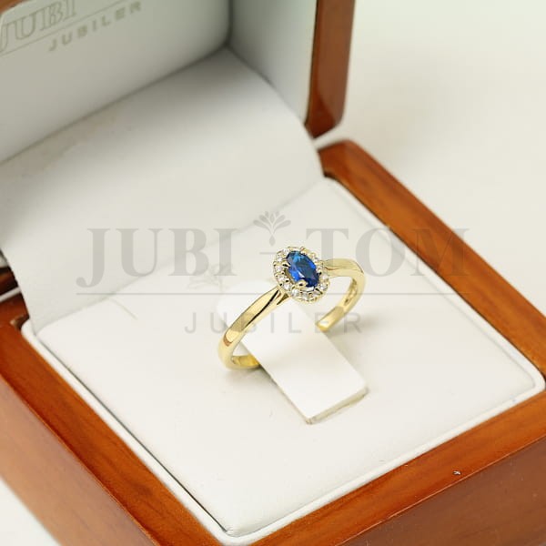 Złoty pierścionek z cyrkoniami Swarovski, centralna szafirowa cyrkonia p.585