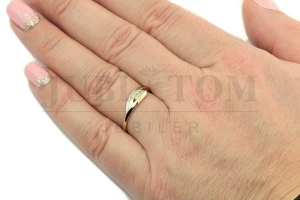 złoty pierścionek z cyrkoniami
