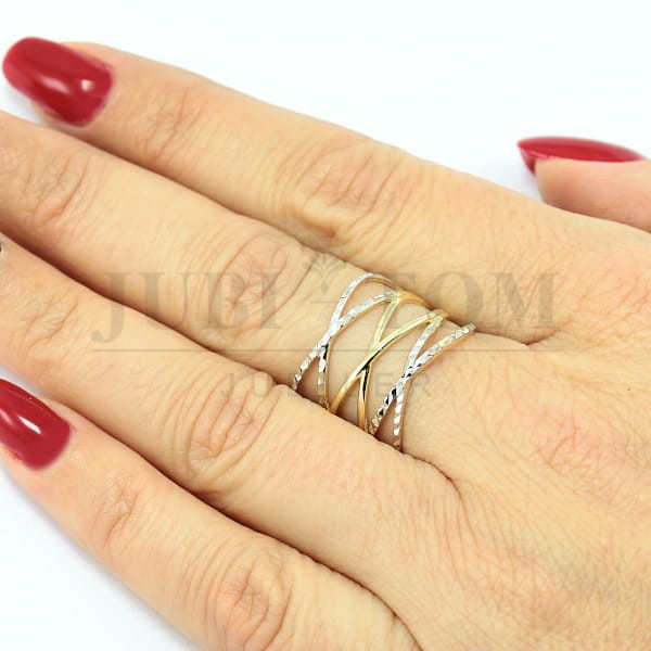 Złoty szeroki pierścionek z diamentowaniem próba 585